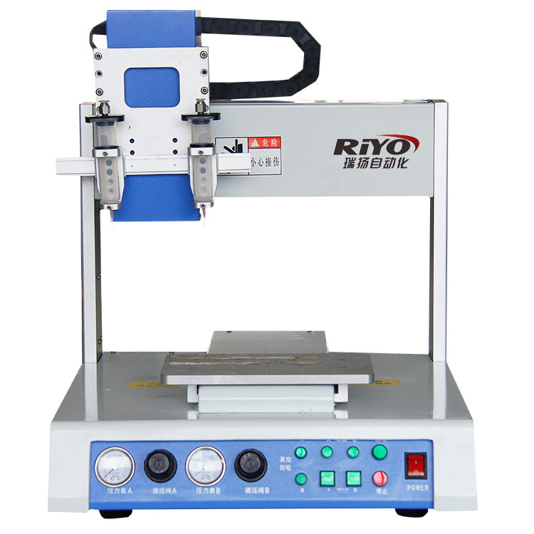 那點膠機該如何保養(yǎng)呢?首先更換膠種,需清洗管路。此時先關(guān)閉進料閥,打開排料閥,將膠桶剩余膠料排出后,關(guān)閉排料閥打開進料閥將清洗溶劑倒入儲膠桶內(nèi),啟動機體,按平時操作方式將溶劑壓出沖洗。點膠機在膠水大量使用前,請先小量試用,掌握產(chǎn)品的使用技巧,以免差錯,當測試沒問題時,再用雙液滴膠機或雙液灌膠機進行大批量的生產(chǎn);抽真空系統(tǒng)對膠水進行抽真空除泡處理,以排除攪拌過程中產(chǎn)生的氣泡,或靜置10-20分鐘再使用,以使混合時產(chǎn)生的氣泡及時排除,混合在一起的膠量越多。混合在一起的膠量越多,其反應(yīng)就越快,固化速度也會越快,所以要根據(jù)實際生產(chǎn)情況進行合理配膠,否則造成膠水的浪費。排除意外,提高生產(chǎn)效率。如今液體控制技術(shù)和點膠設(shè)備廣泛地應(yīng)用到現(xiàn)代工業(yè)中的各種生產(chǎn)領(lǐng)域。 機臺長時間停用時應(yīng)當拔下電源,這樣不僅能使機器的壽命延長而且還會省下來不少的電費。