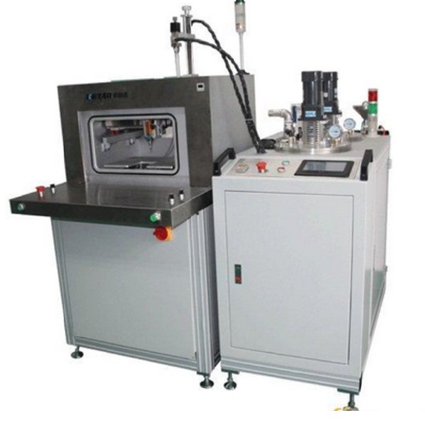 將產品放置于真空箱內,雙液按一定的配比混合好后來進行灌膠。目的是大大改善灌膠質量,減少灌膠時氣泡的產生,自動化程度高,縮短工序,提高生產效率。